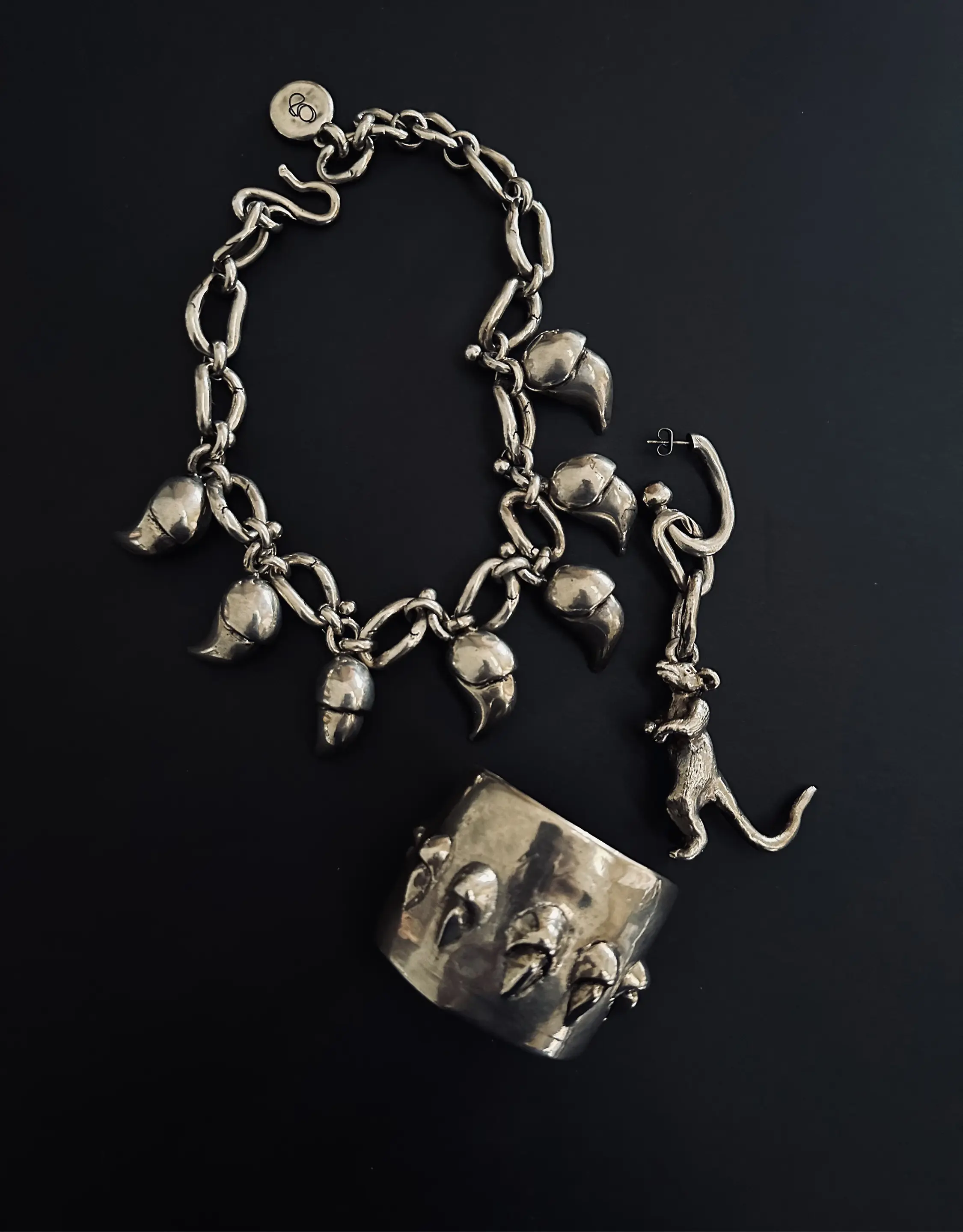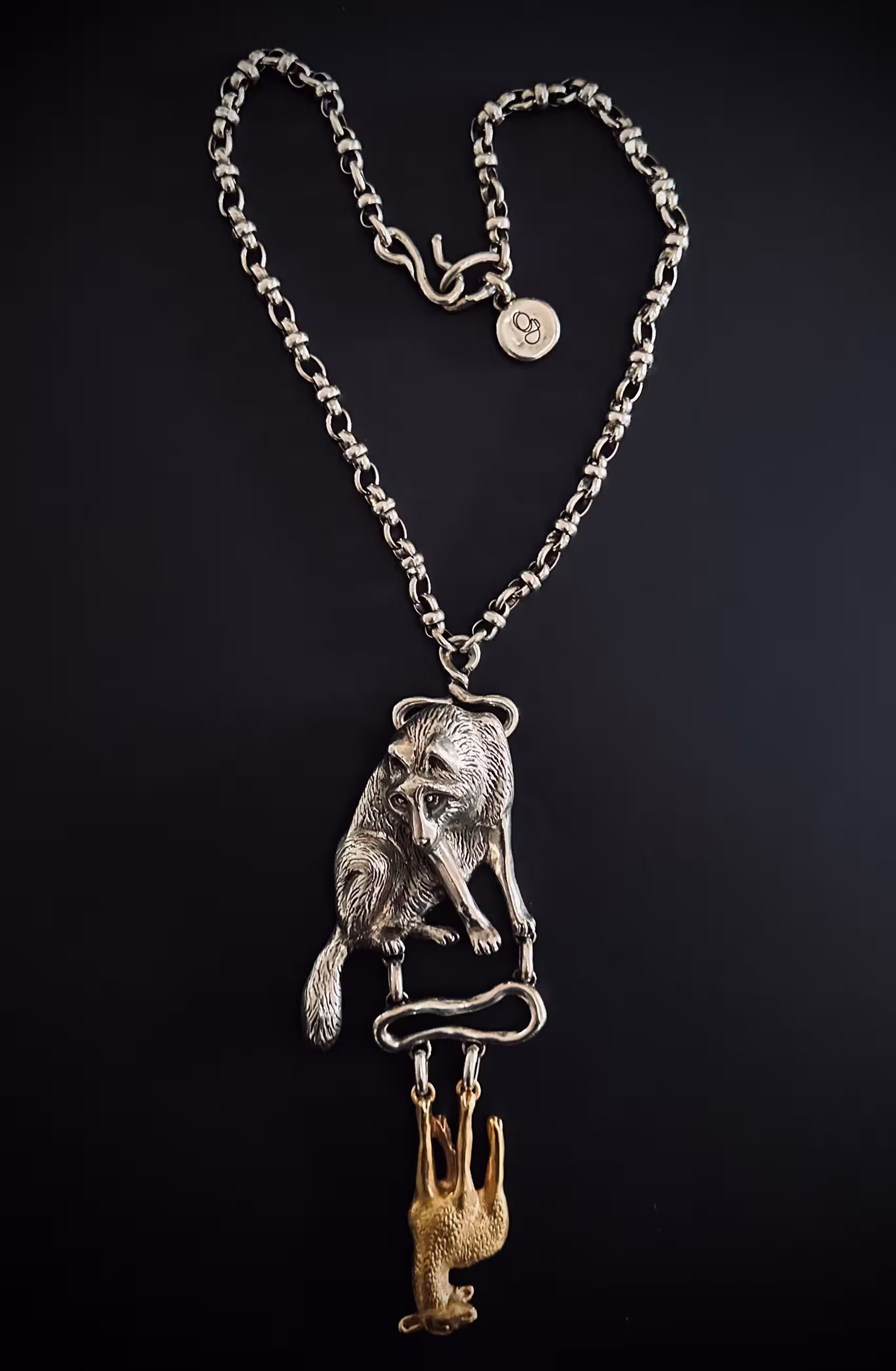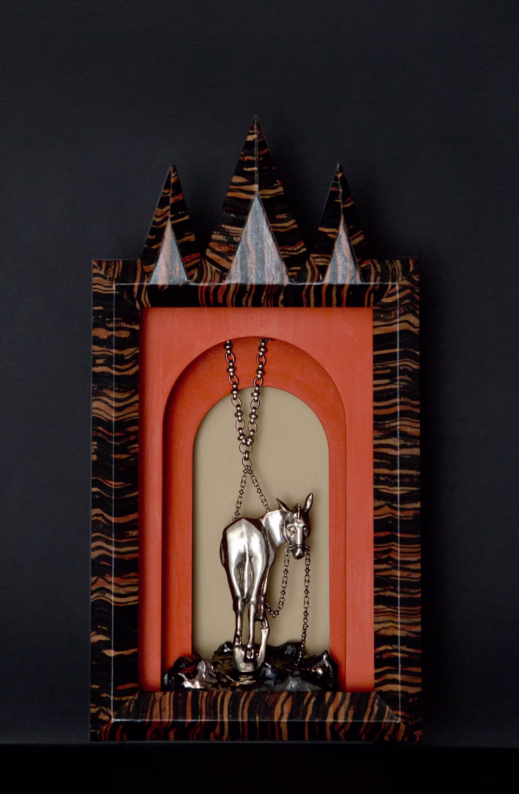 "Fables Etcetera" translates the timeless tales of Aesop and La Fontaine into sculptural jewellery. Through these stories—among the earliest philosophical reflections on human nature—animals become mirrors of emotion, instinct, and behaviour. Gabrielle selected eighteen fables, embarking on an allegorical journey where spirituality and animality intertwine, transforming narrative into form, and story into miniature worlds of art. After careful observation of attitude and expression, each character, boldly scaled for jewellery is first sculpted in wax, then cast in bronze and plated in gold or silver, with selected pieces further adorned with semi-precious stones. Each story is realised in five editions, and for the first edition, every creation is presented within its own Wunderkammer — a framed, miniature universe that allows the piece to be admired and experienced as art, even when not worn. From Le Corbeau et le Renard to other animal hero’s, the works explore determination, ingenuity, and the pursuit of creative expression, inter-wining the line between fable and reality. Gabrielle’s bronze creations bring these timeless narratives to life with a playful yet refined elegance, embodying the distinctive vision that defines her artistic practice.