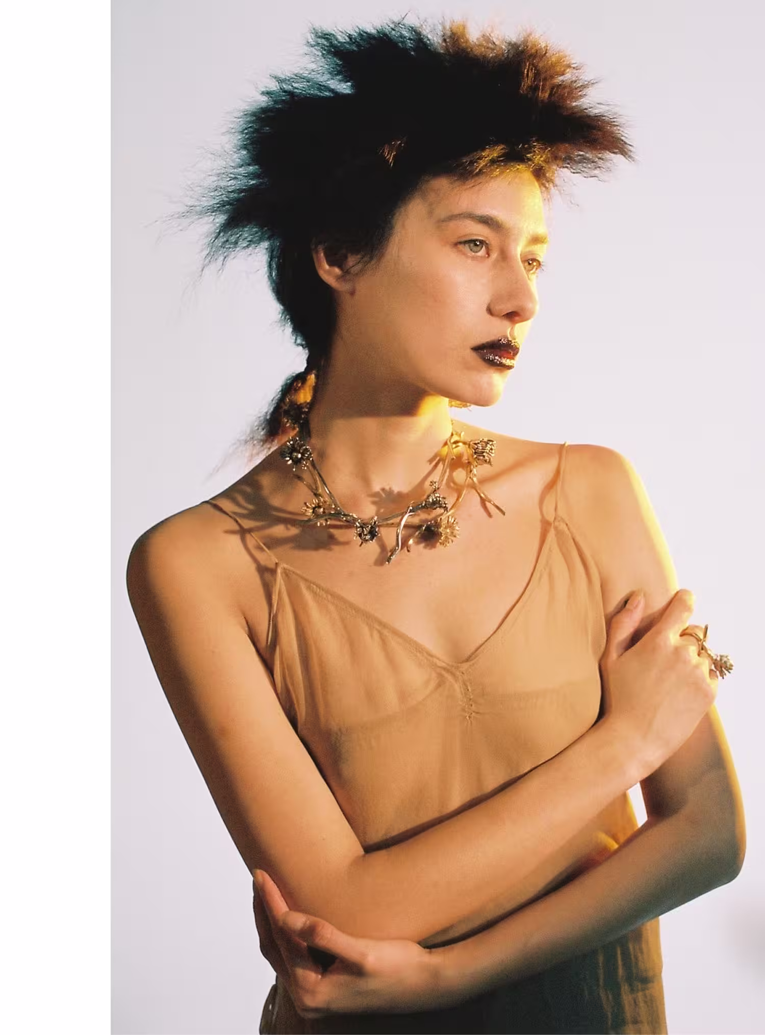 Daisy chain chockers and rings in Edition of 8. Bronze, Gold or Silver plated.