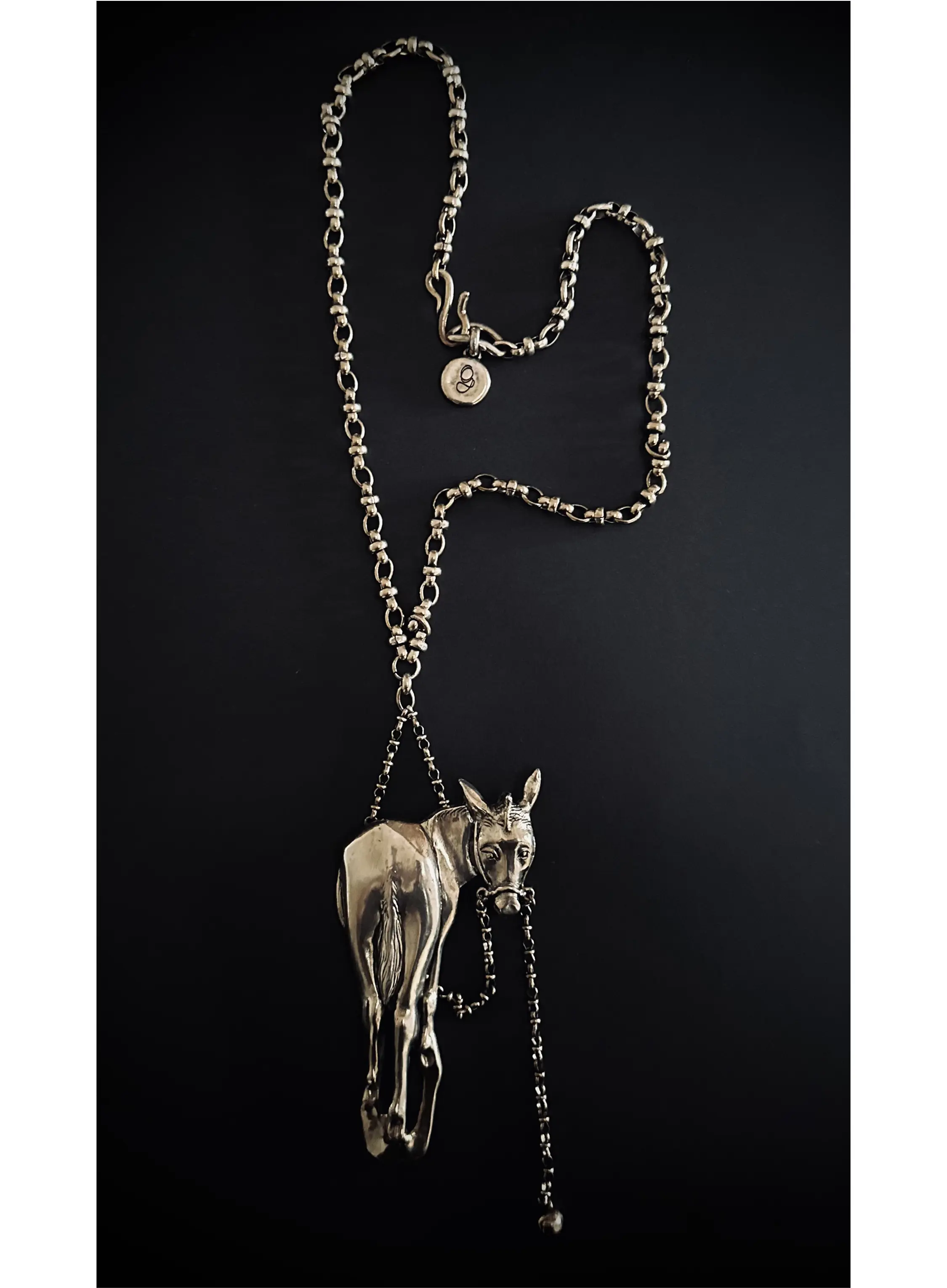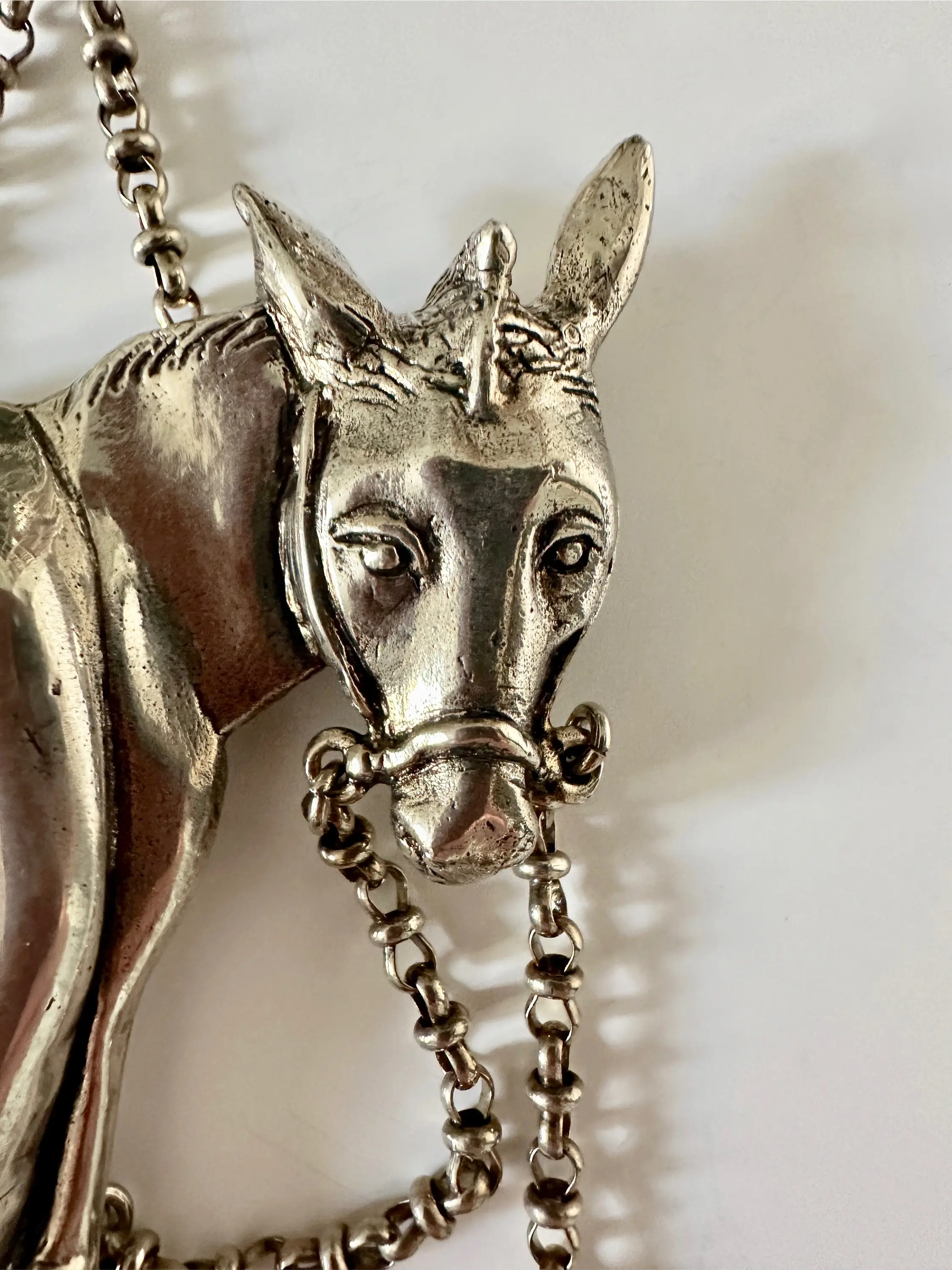 Bronze: silver plated one collier Total length: 47 cm donkey 14 x 7 cm