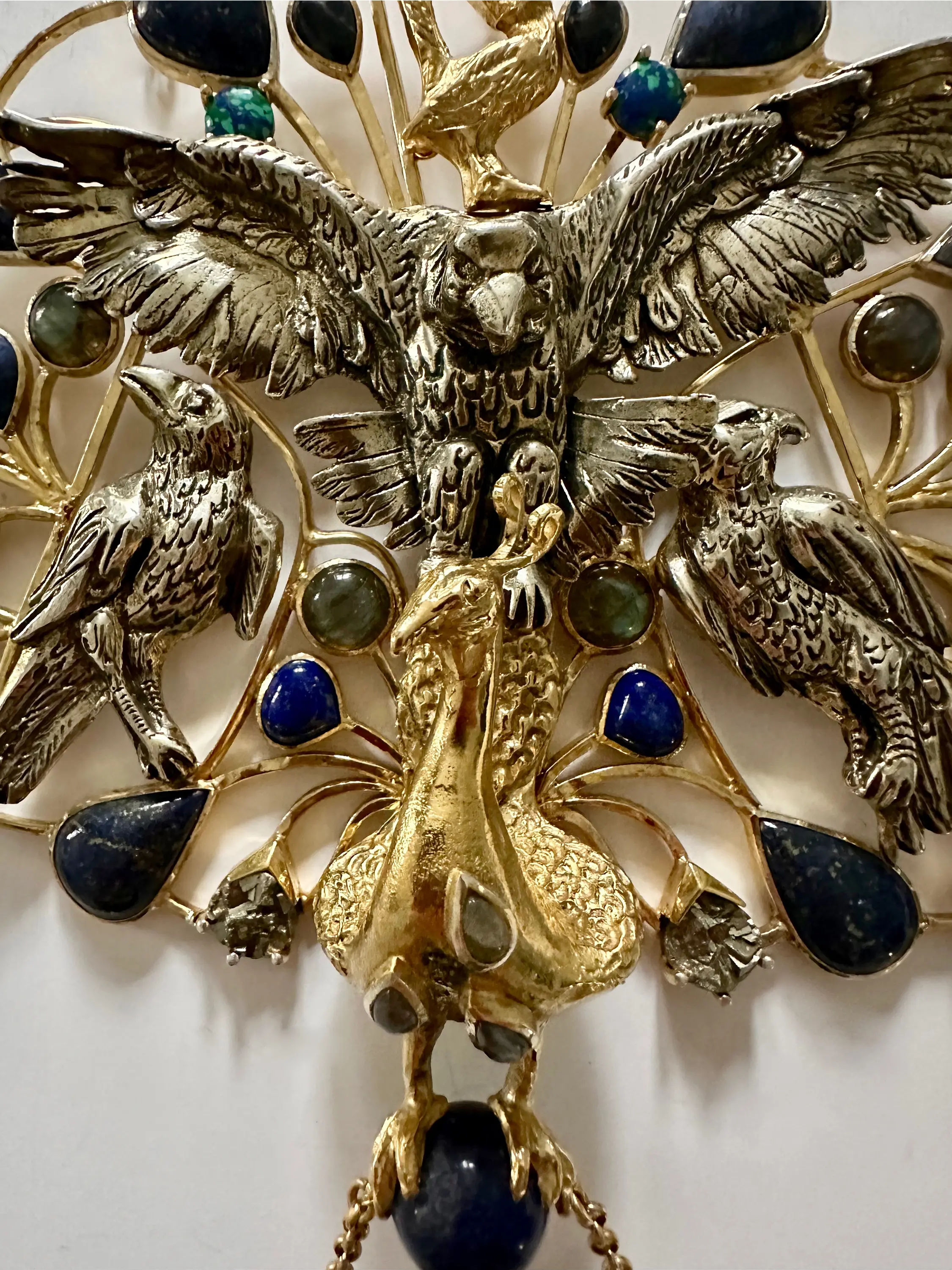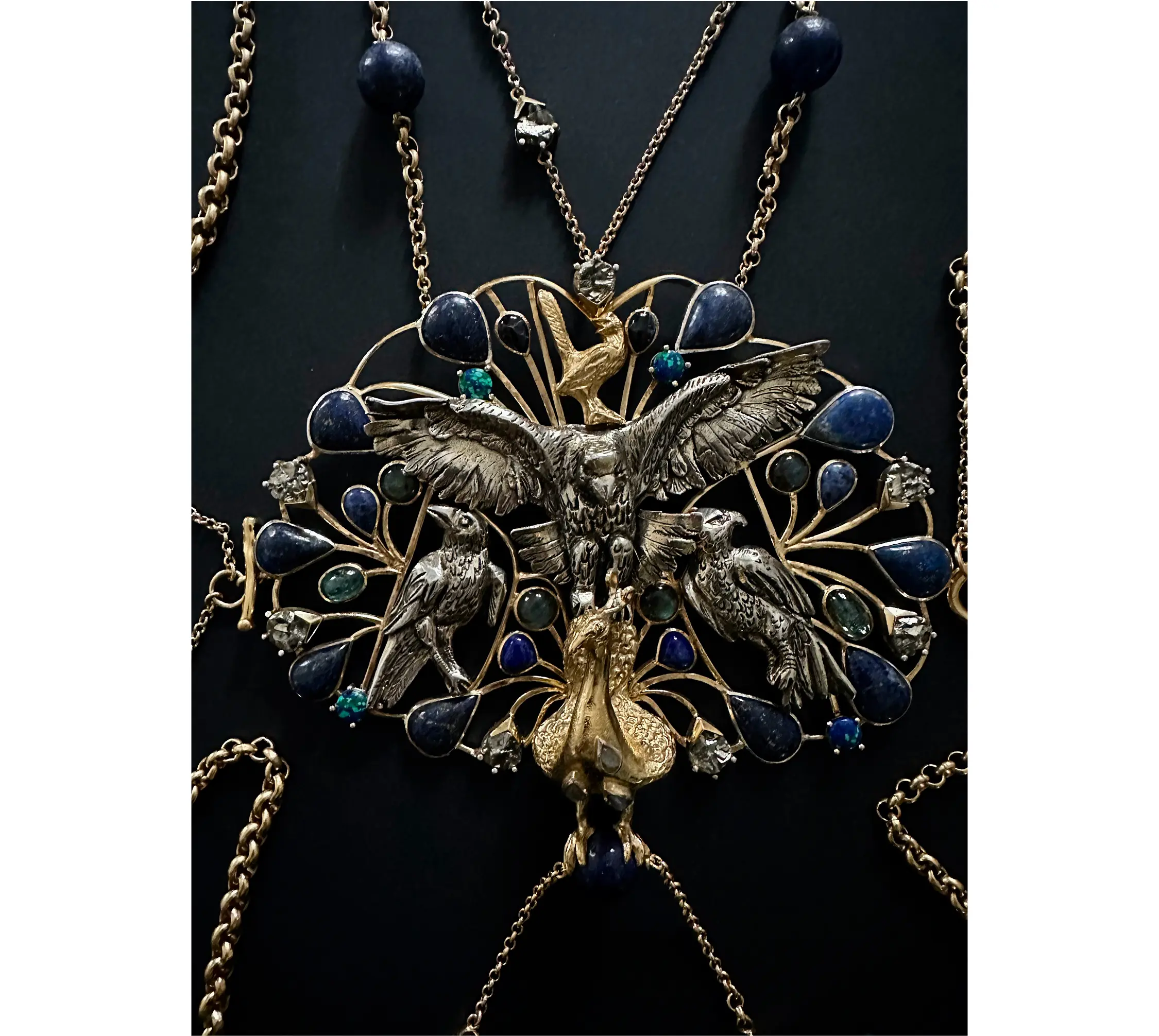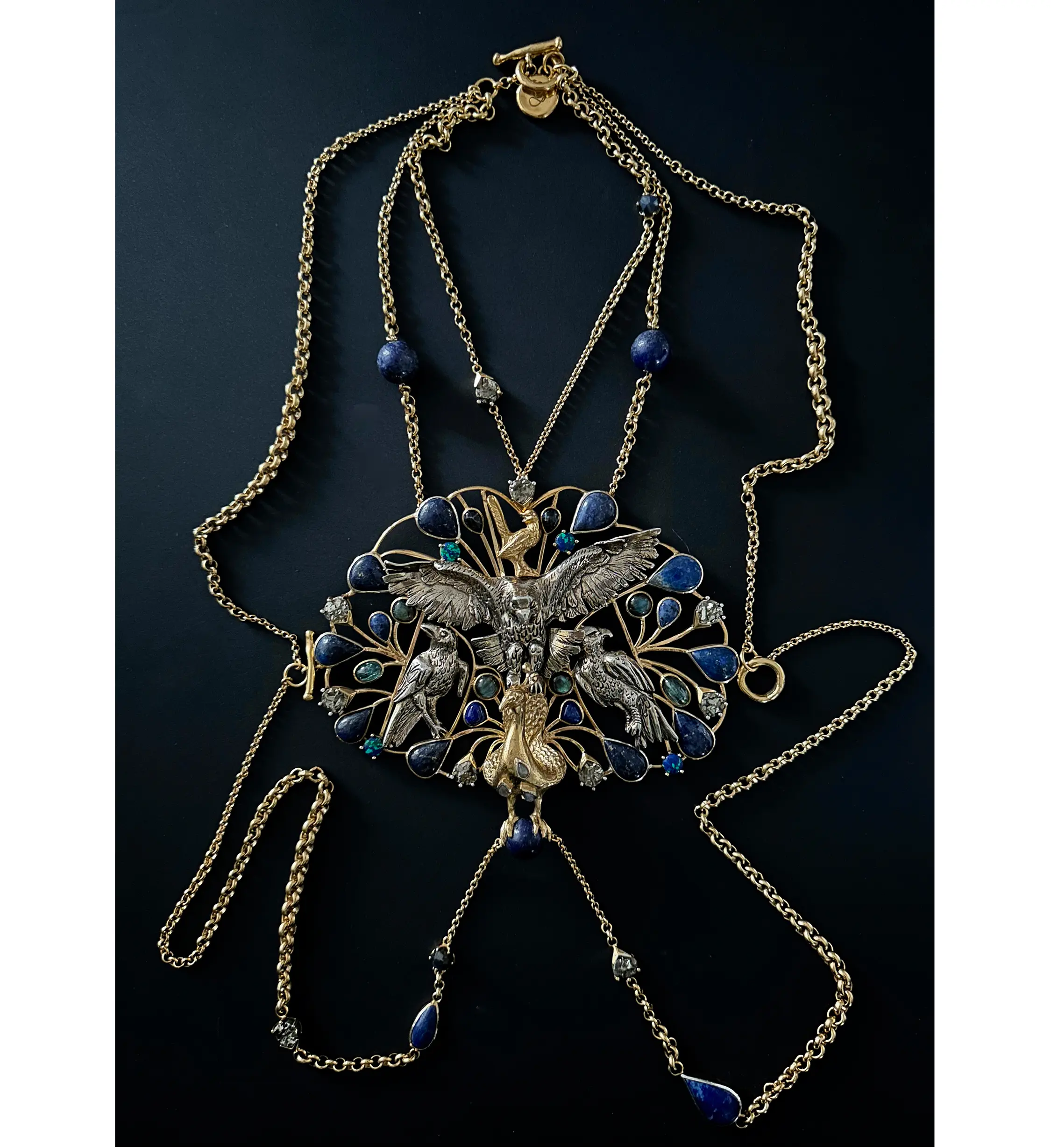 Collier: silver, bronze: gold and silver plated Stones: lapis lazuli, azurite, sodalite, kyanite, labradorite, pyrite