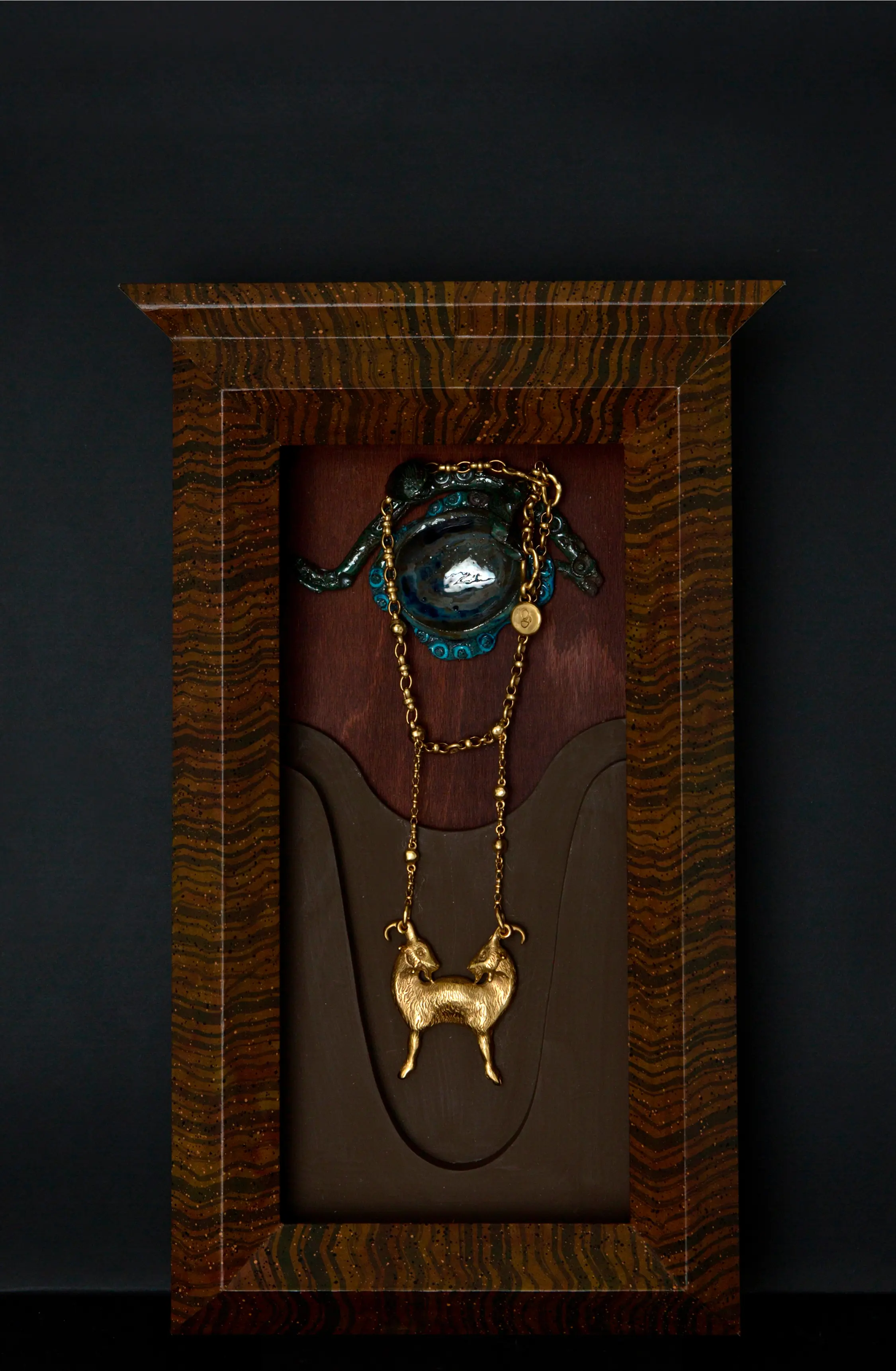 Bronze: old Plated one collier total length 33 cm goats: 8 x 7 cm
